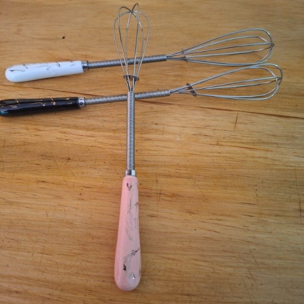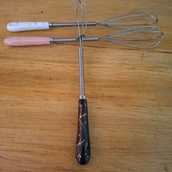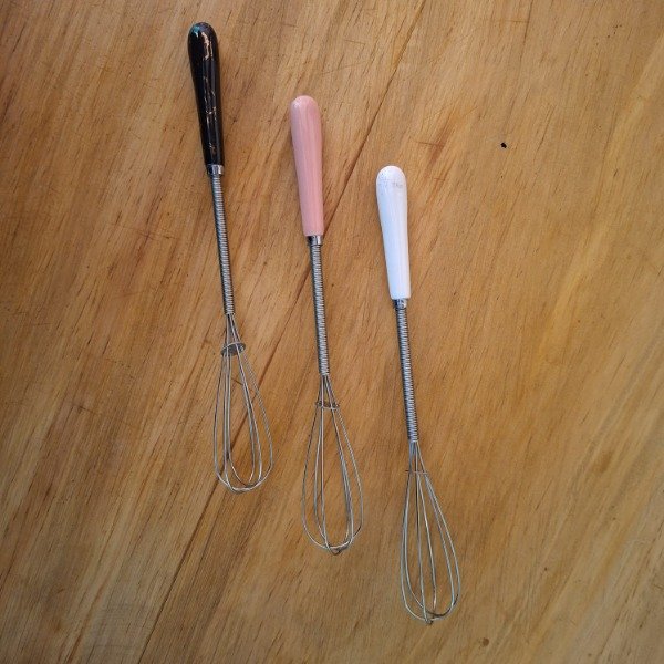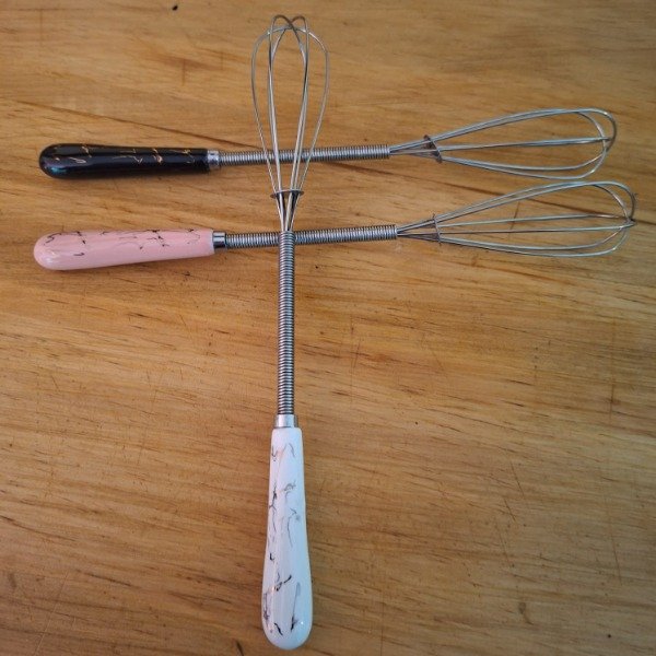 Pequeño batidor de acero inoxidable y mango flexible, para acompañar el batido.