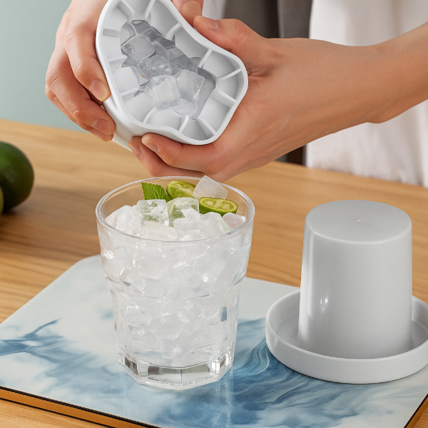 Super práctica y fácil de usar. Llenas el vaso hasta la mitad, ponés la tapa, presionás suavemente y al freezer. Lo mejor es q te ahorras todas las salpicaduras.