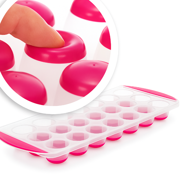 Practiquísima cubetera de plástico con base de silicona que hace super fácil el desmolde.