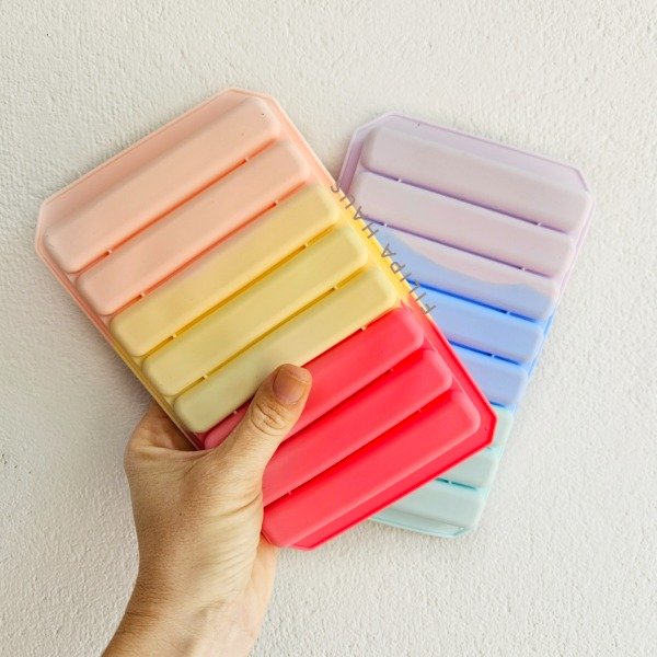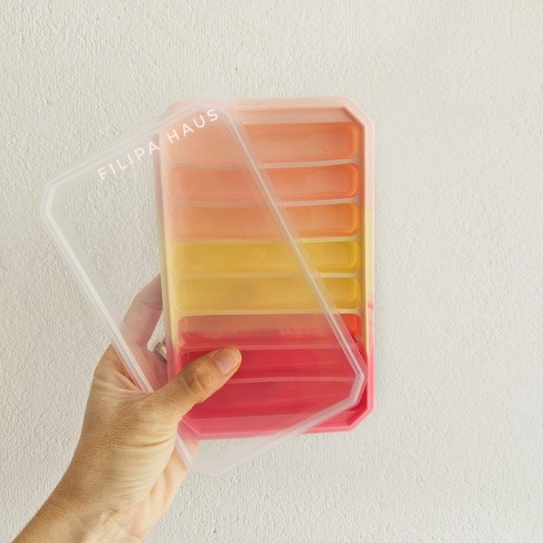 Cubetera de silicona para hacer 8 barras de 11 x 2 x 1.5 cm. Su material flexible permite que sea mucho más fácil desmoldar. Tapa rígida que permite que se apilen