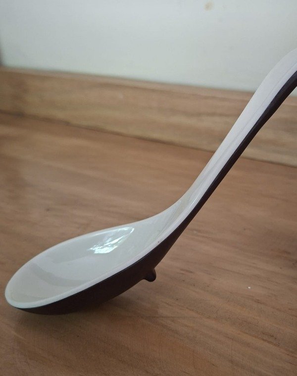 Es una cuchara para sopa, guisos, de estilo asiatico.