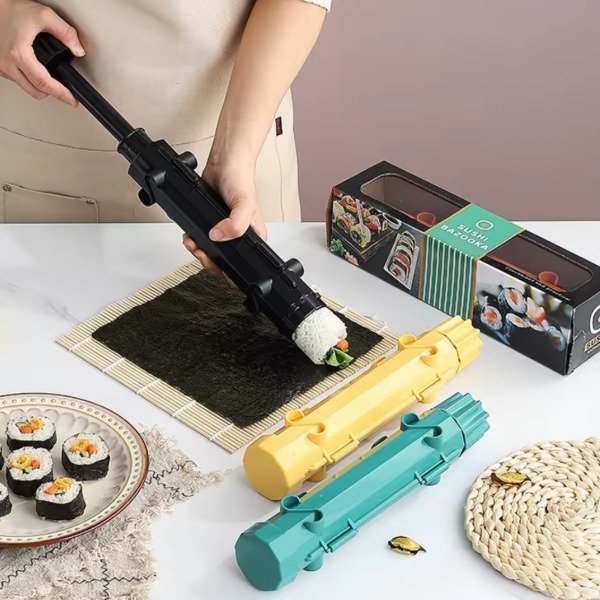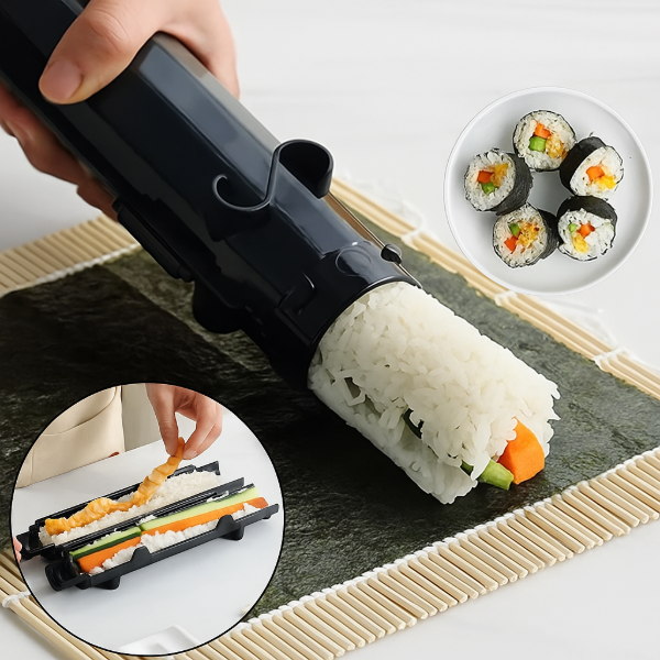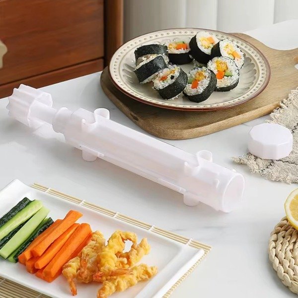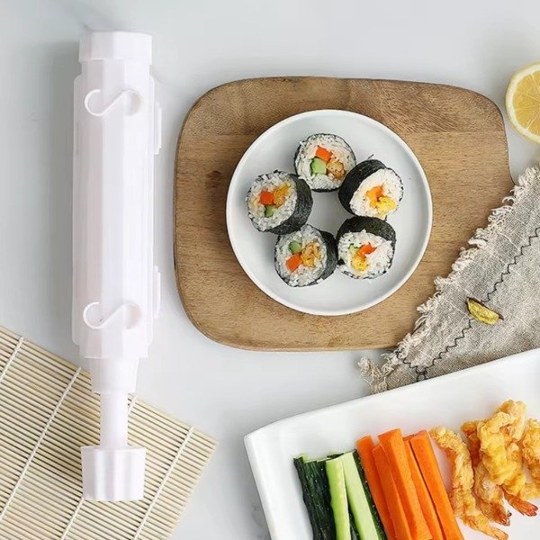 3. Cerras nuevamente el molde y presionas desde la punta el émbolo que empujar el roll. Listo! Cortas y servís