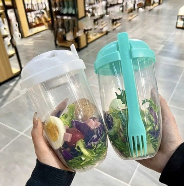 Todo en uno, sin necesidad de llevar mil recipientes para poder comer una rica y fresca ensalada!