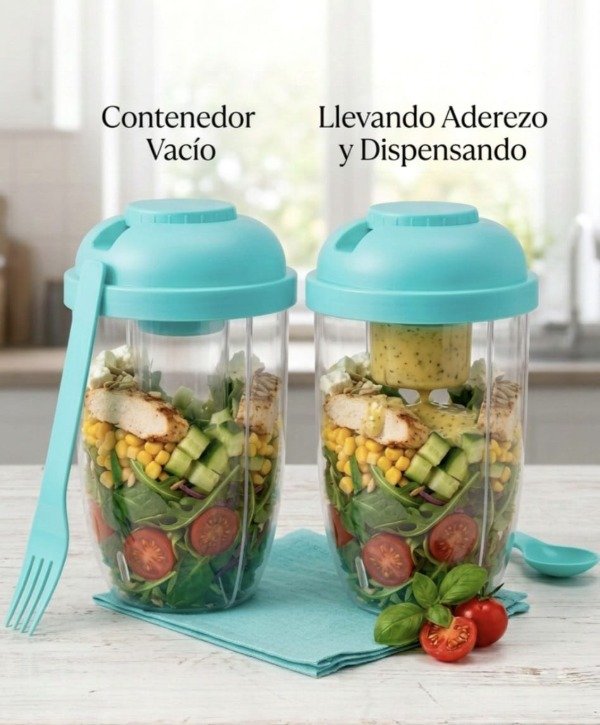 🥗 Tiene un comportamiento separado en la tapa, donde le colocas el aderezo que mas te guste.
