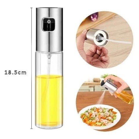 Super fácil de usar! Simplemente llenalo con tu aceite favorito y luego presioná el pulverizador a presión. Nota: no apliques aceite de densidad, porque la boquilla de rociado es un poco pequeña y no producirá una niebla fina y uniforme.