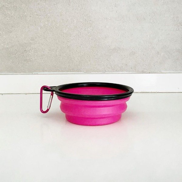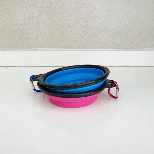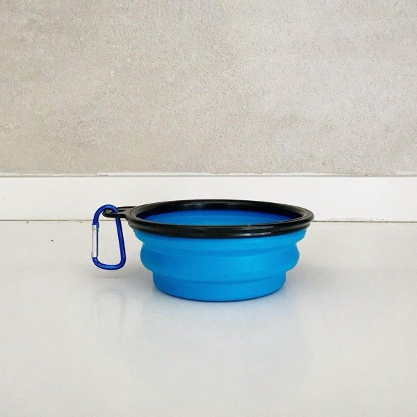 Plato de silicona plegable para mascotas. Llevalo a todos lados, lo desplegás, le cargas agua y listo! Es de silicona y viene con un gancho metálico para colgarlo de la correa y tenerlo siempre a mano.