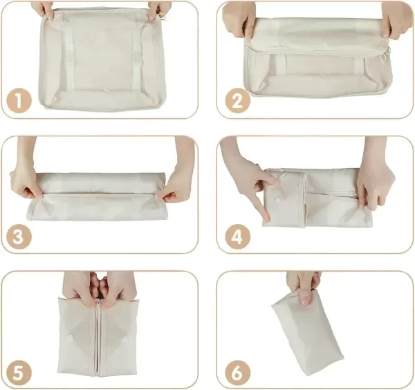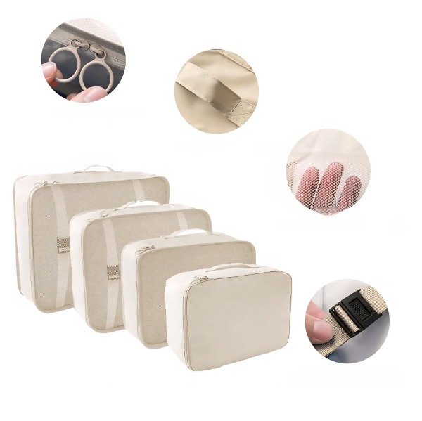 Este set es bárbaro para organizar la ropa en tus valijas, sin agregar peso y aprovechando al máximo el lugar. La tela superior permite ver el interior de cada compartimento para no tener que desarmar todo.